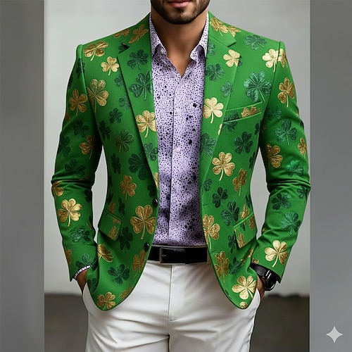 San Patrizio Per uomo Trifoglio Giacca blazer Cappotto Di tendenza Confortevole Traspirante Artistico Casual Quotidiano Abbigliamento da sera Casual Stampa 3D Bottoni Multi-tasche Primavera Autunno