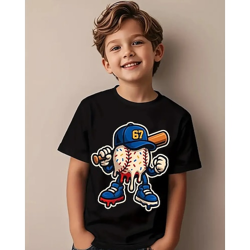 Cotone Bambini Ragazzi Nero Grafico Gergo divertente 67 Maglietta Blusa Girocollo Manica Corta All'aperto Abbigliamento Quotidiano Moda Streetwear Designer Stampa Estate