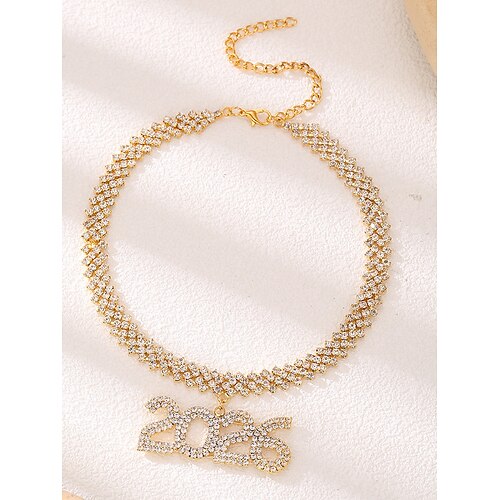 collana da donna in lega di zirconi – scintillante design per l'anno 2026, disponibile in oro e argento per feste e occasioni speciali