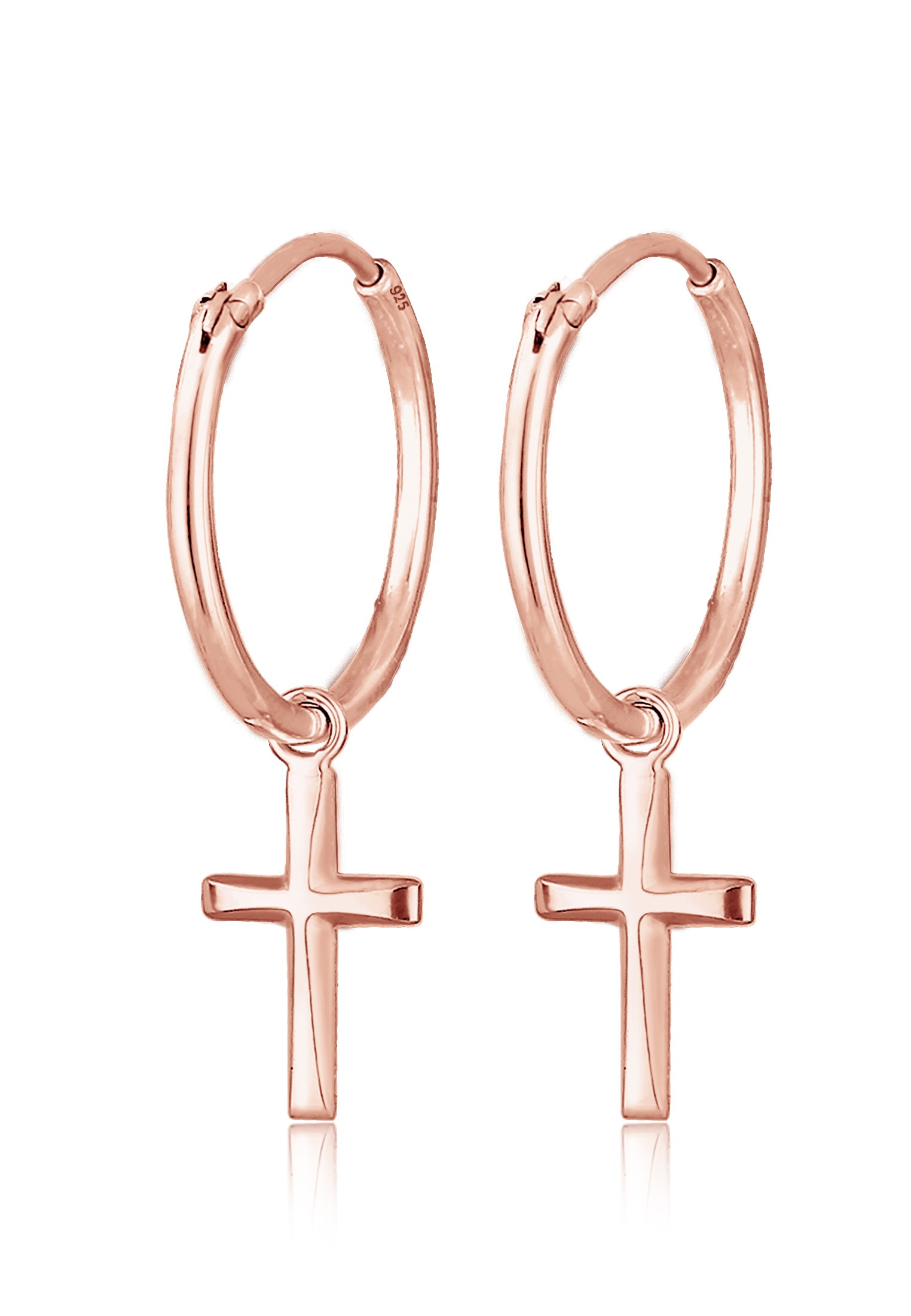 Paar Creolen ELLI "Creolen Hänger Kreuz Religion 925 Silber", rosa (rosegold), Ohrringe, Damen, OneSize, ohne Stein, Silber 925 (Sterlingsilber)