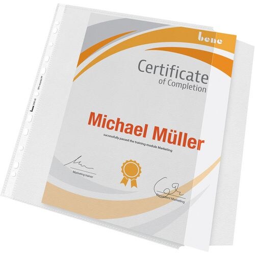 Bene ClearView Prospekthüllen DIN A4 Genarbt Transparent 130 Mikron PP (Polypropylen) Seitliche Öffnung 11 Löcher 10 Stück