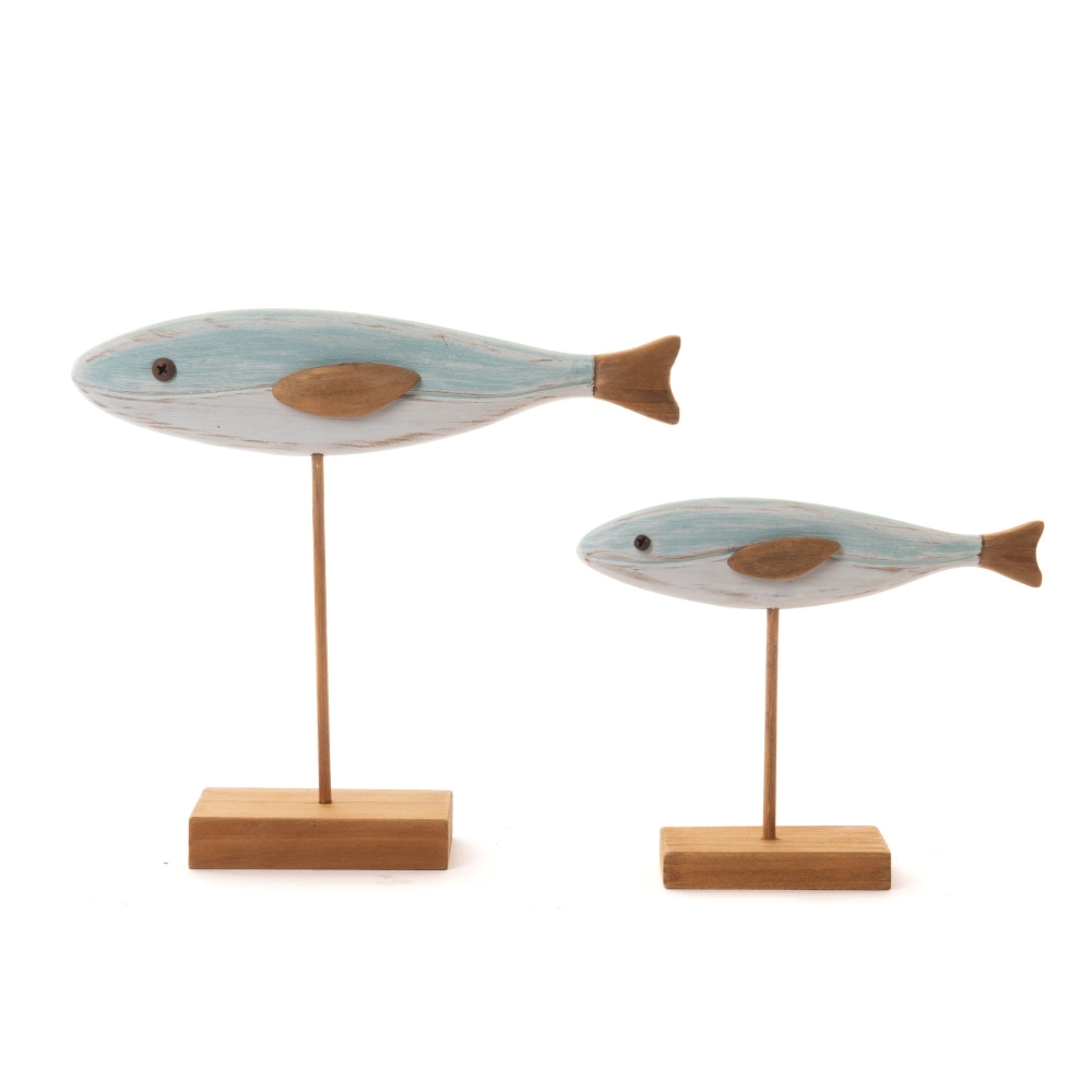 Set aus 2 kleinen Fischen zum Hinstellen von 18 cm - Mehrfarbig Anderes Holz Amadeus 14x5 cm