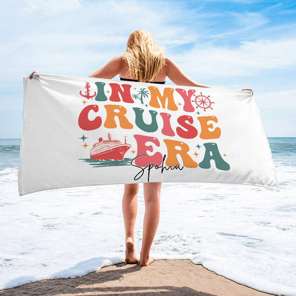 Serviette de plage surdimensionnée personnalisée In My Cruise Era avec nom Super absorbant Cruise Travel Summer Vacation Birthday Gift for Family Friends