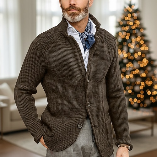 Per uomo Felpa Cardigan Maglione corto Maglia Lavorato a maglia Bavero Da tutti i giorni Abbigliamento Autunno Inverno Nero Blu M L XL