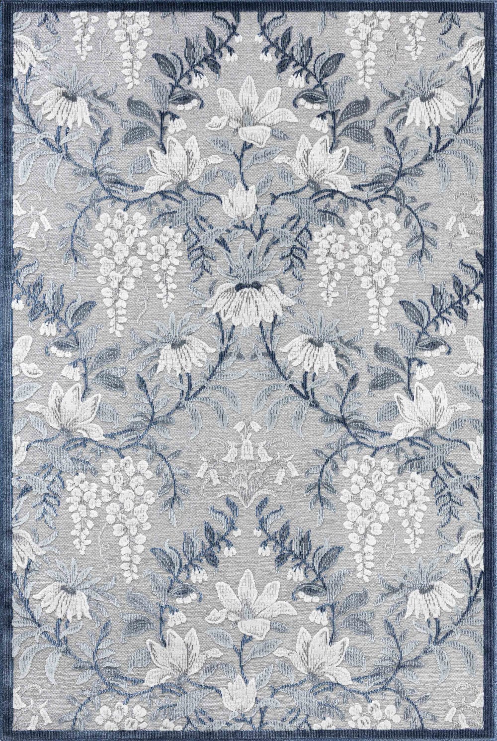 Tappeto interno esterno con motivo in rilievo floreale blu 190x290 cm