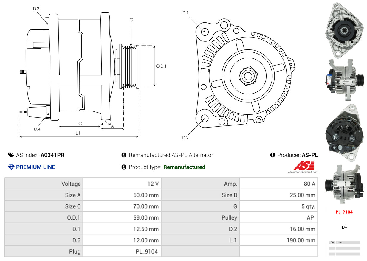 AS-PL Generator A0341PR 12V 80A für FIAT 46532667 46813063 46532668