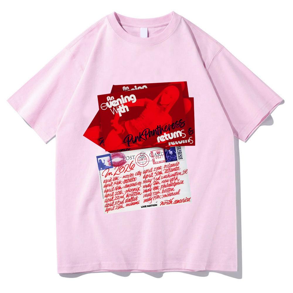 PinkPantheress 2026 Nord-Amerika Tour T-skjorter Ren Bomulls T-skjorte Rund Hals T-skjorter Dame Mann Klær Y2K T-skjorte cm sand