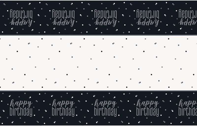 Tischdecke schwarz & silber Happy Birthday