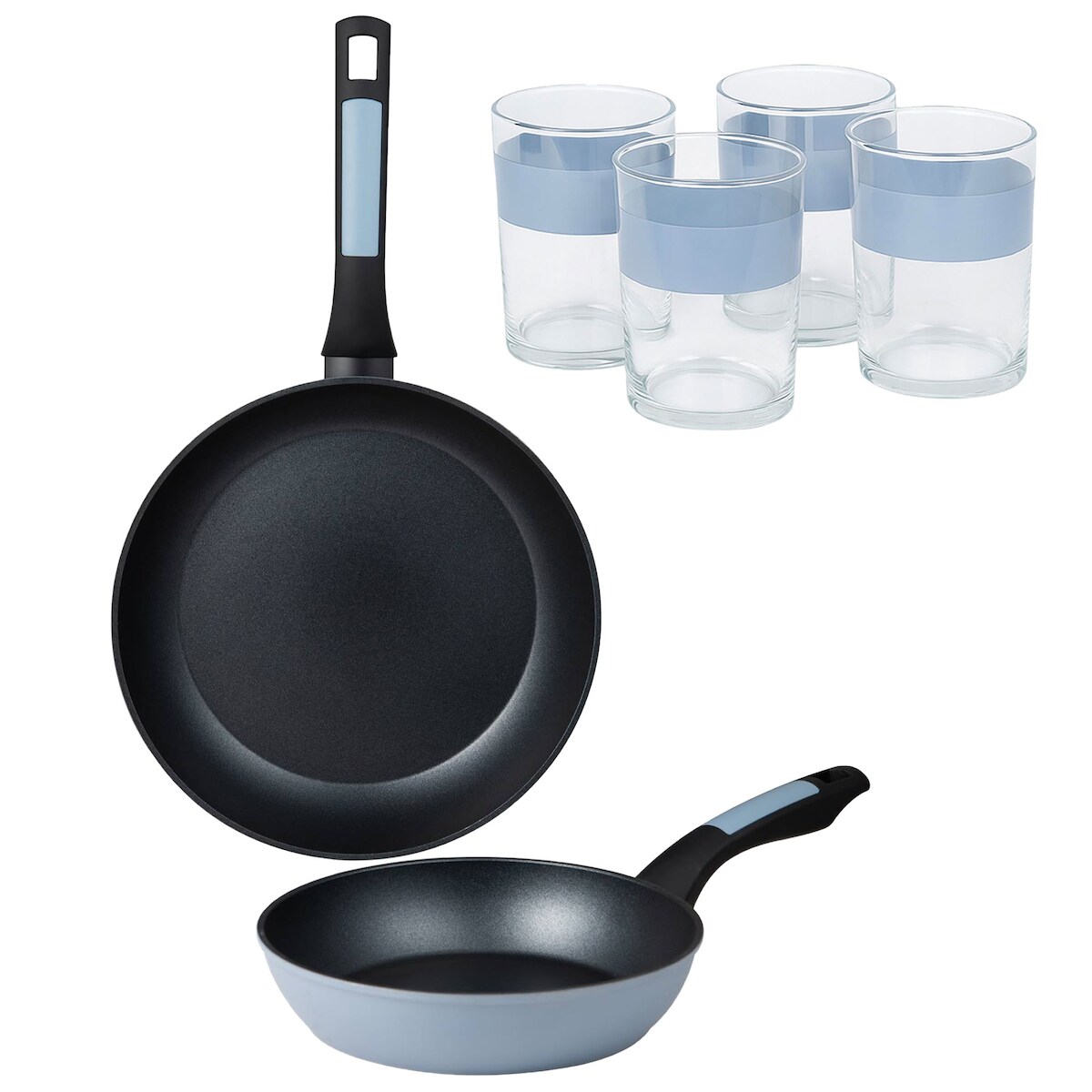 BERGNER - Set aus 3 Pfannen Ø16/Ø20/Ø24 cm gepresstes Aluminium, geeignet für Induktion Blue Navy Paradise 4er-Set Gläser 0,5 L NOIA