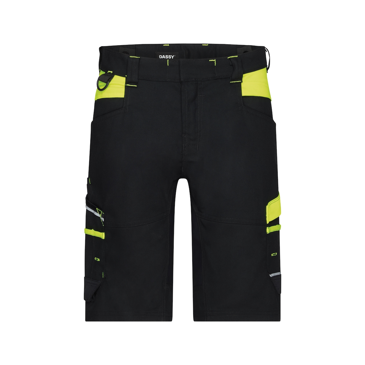 DASSY® Manilla Women Damen-Arbeitsshorts, Logix, Adjusted Fit, Smart Flex PESCO 41, Cordura®, OEKO-TEX®, Art. 250110 schwarz/neongelb 46