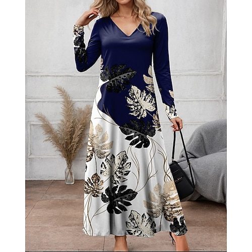 Per donna Abito Lungo Maxi Abito Abito Stampato Moda Moderno Quotidiano Ferie Uscire Vestibilità regolare Floreale Grafico Manica Lunga Scollo a V Giallo Chiaro Verde chiaro Rosa Verde Primavera
