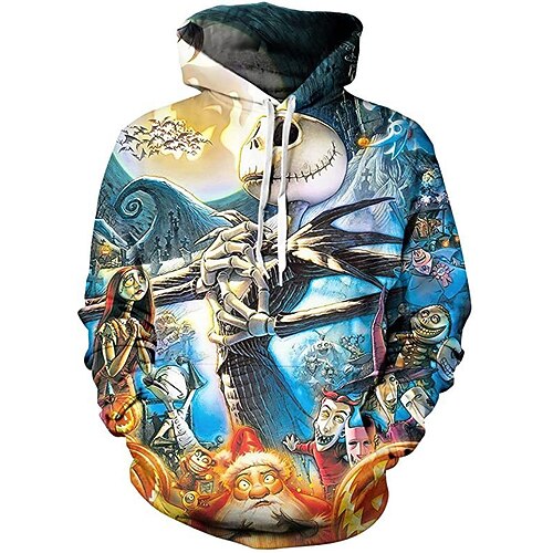 Nightmare Jack Skellington Felpa con cappuccio Felpa con cappuccio natalizia divertente 3D Natale Tasca frontale Grafica Per Da coppia Per uomo Per donna Per adulto Natale Carnevale Stampa 3D Feste