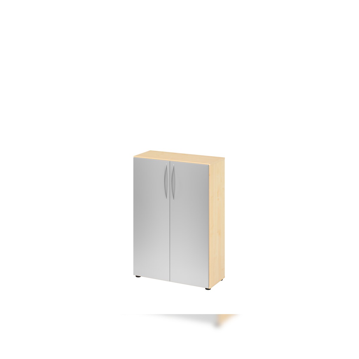 Flügeltürenschrank, HxB 830 x 1200 mm, Kunststoffplatte, 1 Fachboden, reinweiß / weißaluminium / Ahorn mauser