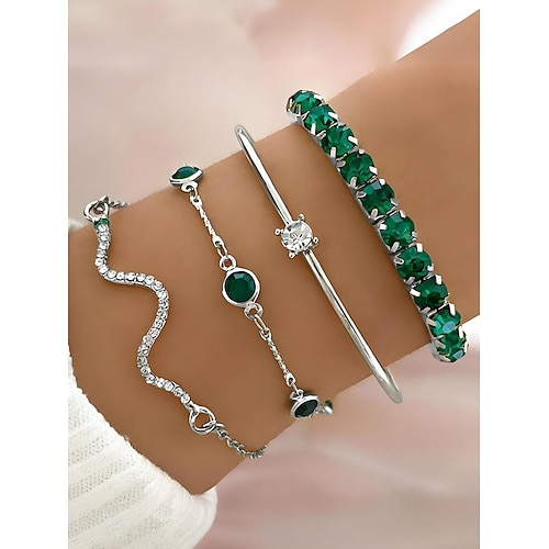 set di braccialetti da donna in cristallo verde color oro – eleganti gioielli in lega da 4 pezzi con catena regolabile, accessori alla moda per feste, matrimoni e occasioni speciali