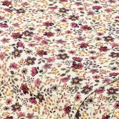 Tissu jersey côtelé de coton à impression numérique "fleurs" avec élasthanne, écru naturel/coloré