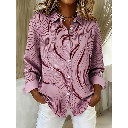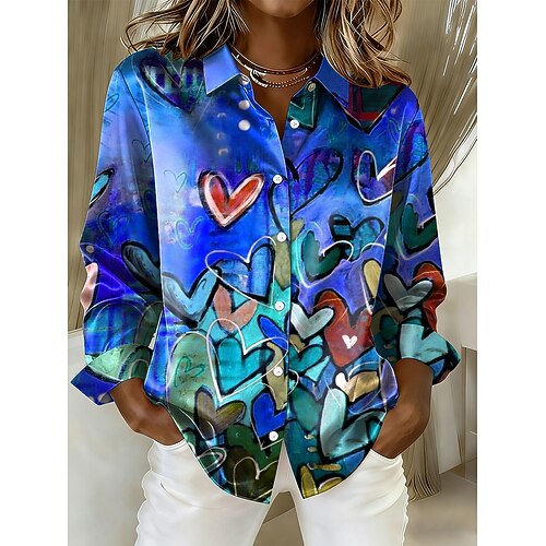 Per donna Camicia Cuore Grafico Vintage Elegante Moderno Manica Lunga Colletto a Camicia Top Regolari Quotidiano Ferie Blu Giallo Viola Verde Primavera Inverno
