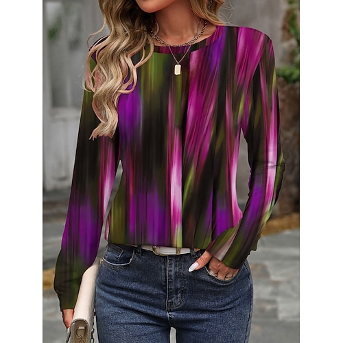 Per donna Maglietta Grafico Geometrico Astratto Vintage Moda Elegante Manica Lunga Girocollo Top Regolari Quotidiano Stampato Fucsia Marrone Estate Primavera