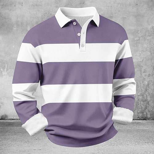 Per uomo Geometrico Golf Polo Manica Lunga Magliette polo Bavero Casual All'aperto Athleisure Abbigliamento quotidiano Stampa 3D Bottoni Primavera Autunno Inverno Rosso Viola Verde
