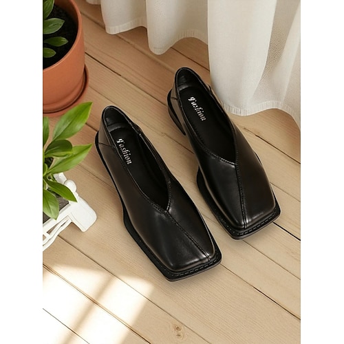 ballerine in similpelle marrone da donna - mocassini slip-on alla moda con punta quadrata per ufficio e abbigliamento casual comfort quotidiano