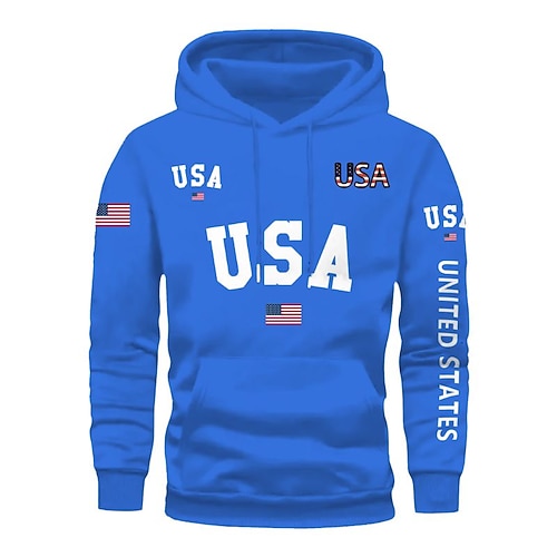 Per uomo Lettera Stampe Grafiche Bandiera Nazionale Felpa con Cappuccio Moda Quotidiano Casual Manica Lunga Con Cappuccio Vacanza Feste Abbigliamento casual alla moda Festival Nero Bianco Blu reale