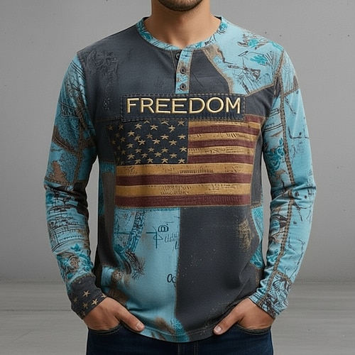 Per uomo Bandiera Americana FREEDOM Maglia Henley Manica Lunga Moda Carino Quotidiano Casuale Ferie Uscire Primavera Autunno Tutte le stagioni Rosa Blu chiaro Verde scuro Cachi Henley Maglietta