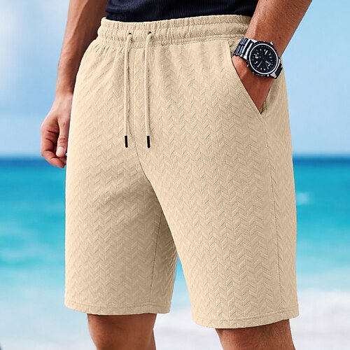 Per uomo Pantaloncini Waffle Pantaloncini Estivi Shorts da Spiaggia Pantaloncini casual Pantaloncini strutturati Coulisse Elastico in vita Tinta unica Comodità Lunghezza al ginocchio Quotidiano