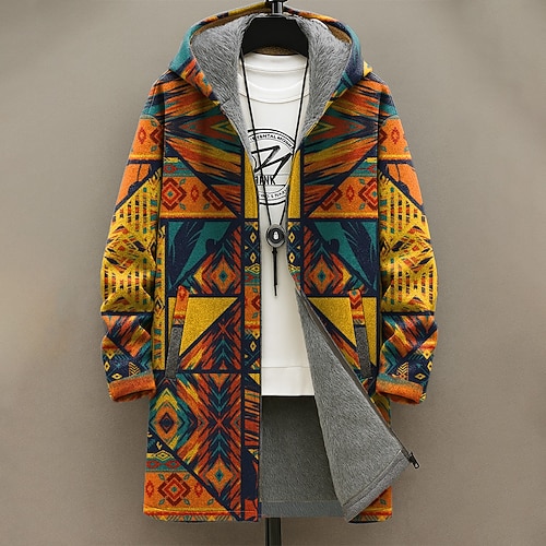 Per uomo Geometrico Cappotto Invernale Giacca in Pile Cappotto Calore Termico Confortevole Casual Abbigliamento quotidiano Cerniera Tasca Stampa 3D Autunno Inverno Con Cappuccio Manica Lunga Rosso