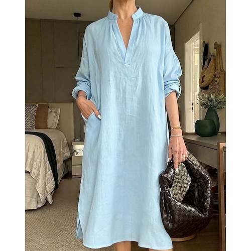 Per donna Mini Abito Abiti ispirati al lino Abito in cotone e lino Moda Essenziale Classico Quotidiano Uscire Weekend Vestibilità regolare Semplice Manica Lunga Scollo a V Bianco Giallo Verde