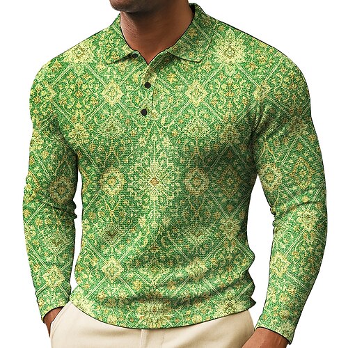 Per uomo Grafico Magliette Polo a Nido d'Ape Manica Lunga Magliette polo Camicie con Colletto Casual Abbigliamento quotidiano Bottoni Primavera Autunno Inverno Blu Marrone Verde
