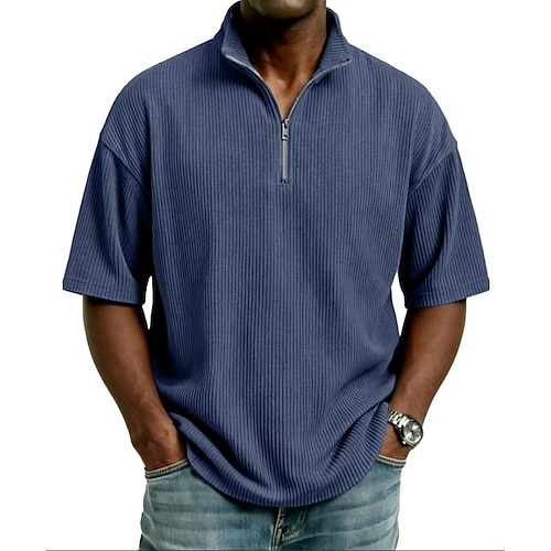 Per uomo Polo con zip Testurizzato Casuale Ferie Bavero Zip a un quarto Manica Corta Moda Essenziale Semplice Zip a un quarto Estate Primavera Vestibilità aderente Blu Nero Bianco Cachi Grigio Polo