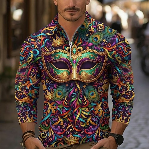 Per uomo Grafico Polo con zip Maglia da golf Manica Corta Magliette polo Camicie con Colletto Casual Abbigliamento da vacanza Abbigliamento da rave Abiti da festa Stampa 3D Polo con cerniera a un
