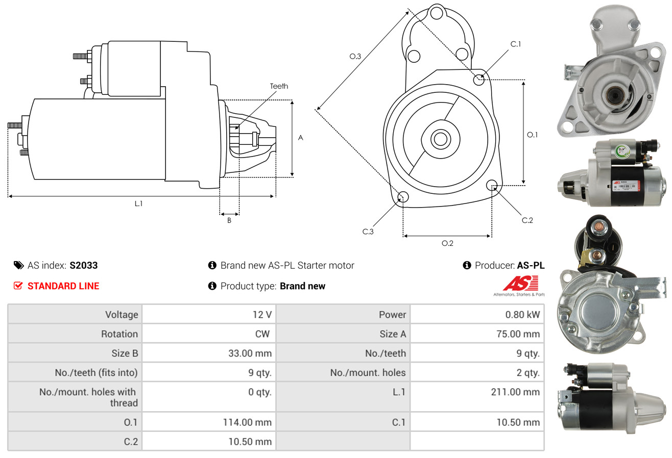 AS-PL Starter S2033 12V für HONDA 31200-PCO-884 31200-P06-L03 31200PM1005