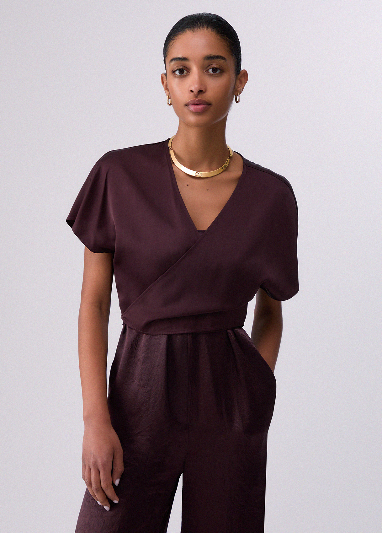 Liu Jo Top Incrociato In Raso, Marrone, 46