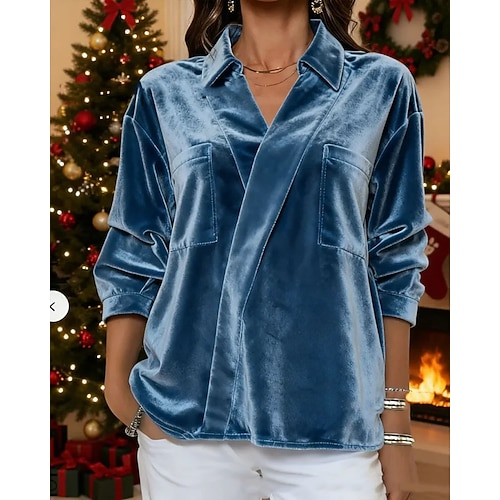 Per donna Velluto Elegant Elegante Blusa Semplice Elegante Manica Lunga Girocollo Top Regolari Quotidiano Ferie Uscire Rosa Verde militare Rosso Blu Azzurro cielo Autunno Inverno