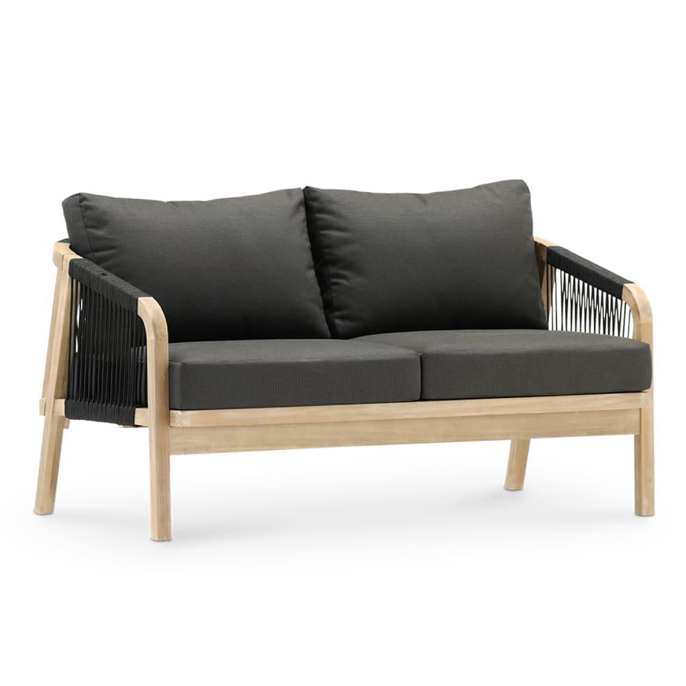 Divano 2 posti matrimoniale in legno di acacia chiaro e corda nera