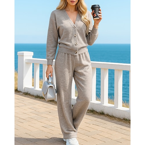Per donna Cardigan lavorato a maglia Abiti da salotto Tinta unita Completo Abbigliamento Autunno Nero Blu Lavoro All'aperto Viaggio Leggero Di tendenza Manica Lunga Sport Abbigliamento sportivo