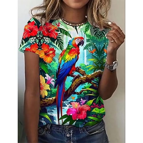 Per donna Maglietta Grafico Animale Uccello Vintage Elegante Classico Manica Corta Girocollo Top Regolari Quotidiano Weekend Stampato Blu Verde Estate Primavera