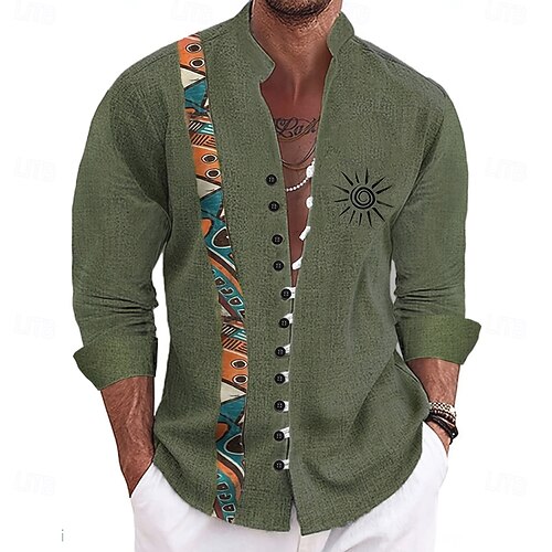 Per uomo Sole Etnico Cultura indiana Camicia Camicia con colletto alla coreana Manica Lunga Vintage Retrò Vacanza Abbigliamento quotidiano Uscire Primavera Autunno Collo alla coreana Colletto alla