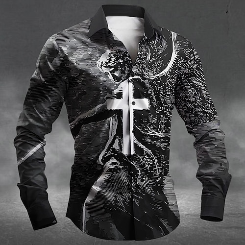 Per uomo Illusione ottica Strappato Camicia Camicia con colletto alla coreana Manica Lunga Moda Casual Abbigliamento Quotidiano Ferie Primavera Autunno Collo alla coreana Colletto alla coreana Stampa