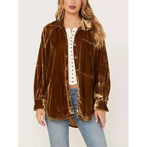Per donna Camicia Blusa Semplice Moderno Casual Manica Lunga Colletto a Camicia Top Regolari Quotidiano Ferie Bottoni Rosa Viola Marrone Verde Autunno