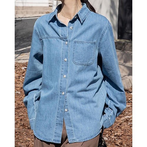 Per donna Camicia Blusa Semplice Casual Manica Lunga Colletto a Camicia Top Regolari Quotidiano Ferie Tasca Bottoni Blu Autunno Inverno
