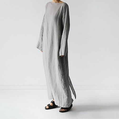 Per donna Abito Lungo Maxi Abito Vestito Casual Abito in cotone e lino Elegante Moda Moderno Quotidiano Vacanza Uscire Vestibilità regolare Semplice Manica Lunga Senza Spalle Marrone chiaro Blu scuro