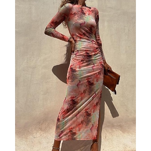 Per donna Abito Midi Vestito da Festa Abito da Cocktail Tubino Abito Stampato Moderno Festa serale Feste Occasione speciale Vestibilità regolare Floreale Manica Lunga Girocollo Blu Nero Rosa