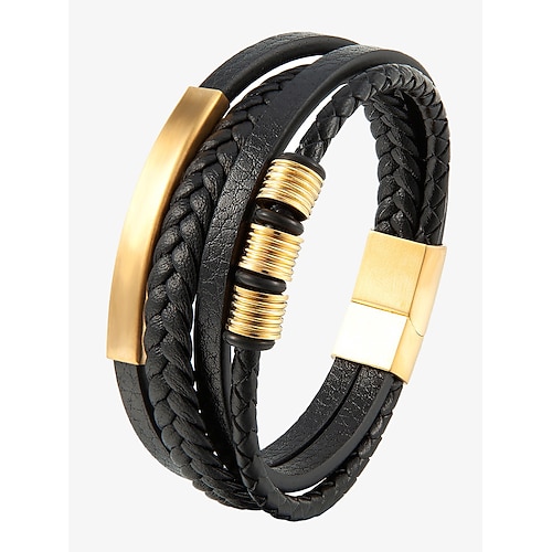 Bracciale da uomo in pelle intrecciata con dettagli dorati – design moderno ed elegante