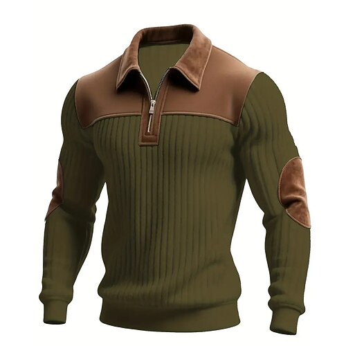 Per uomo Polo Polo con zip a un quarto Vacanza Streetwear Zip a un quarto Manica Lunga Moda Essenziale Blocco di colori Patchwork Tasca Autunno Inverno Vestibilità regolare Nero Bianco Kaki Verde