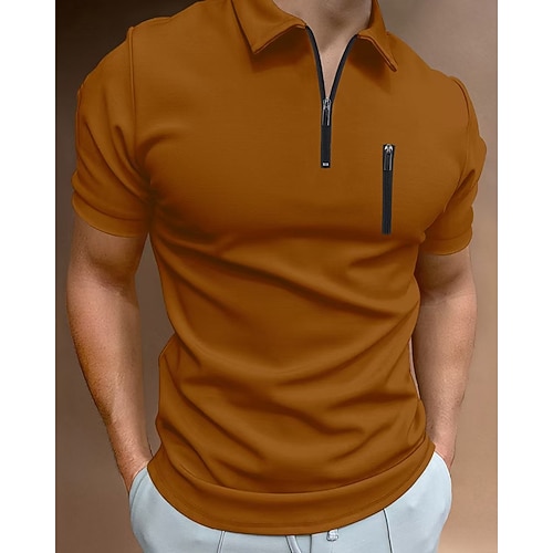 Per uomo Polo Polo con zip a un quarto Abbigliamento quotidiano Data Zip a un quarto Manica Corta Moda Essenziale Semplice Cerniera Tasca Estate Vestibilità regolare Nero Rosa Blu Viola Marrone Verde