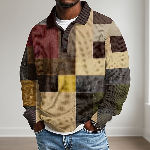 Per uomo Plaid Magliette Polo a Nido d'Ape Maglia da golf Manica Lunga Magliette polo Camicie con Colletto Vintage Casual Abbigliamento da vacanza Abbigliamento Formale Abbigliamento da festa Bottoni