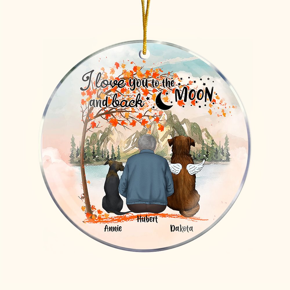 Adorno colgante acrílico redondo personalizado I Love You to the Moon and Back con fondo de hojas de arce rojas Regalo de cumpleaños navideño para ama