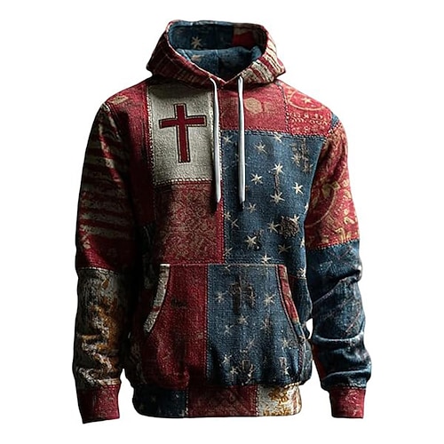 Per uomo Croce Bandiera Americana Felpa con Cappuccio Moda Quotidiano Casual Manica Lunga Con Cappuccio Vacanza Feste Abbigliamento casual alla moda Festival Rosso Blu Stampa Autunno Inverno