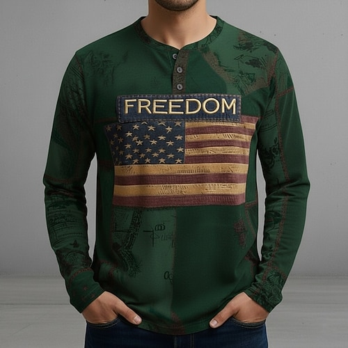 Per uomo Bandiera Americana FREEDOM Maglia Henley Manica Lunga Moda Carino Quotidiano Casuale Ferie Uscire Primavera Autunno Tutte le stagioni Rosa Blu chiaro Verde scuro Cachi Henley Maglietta